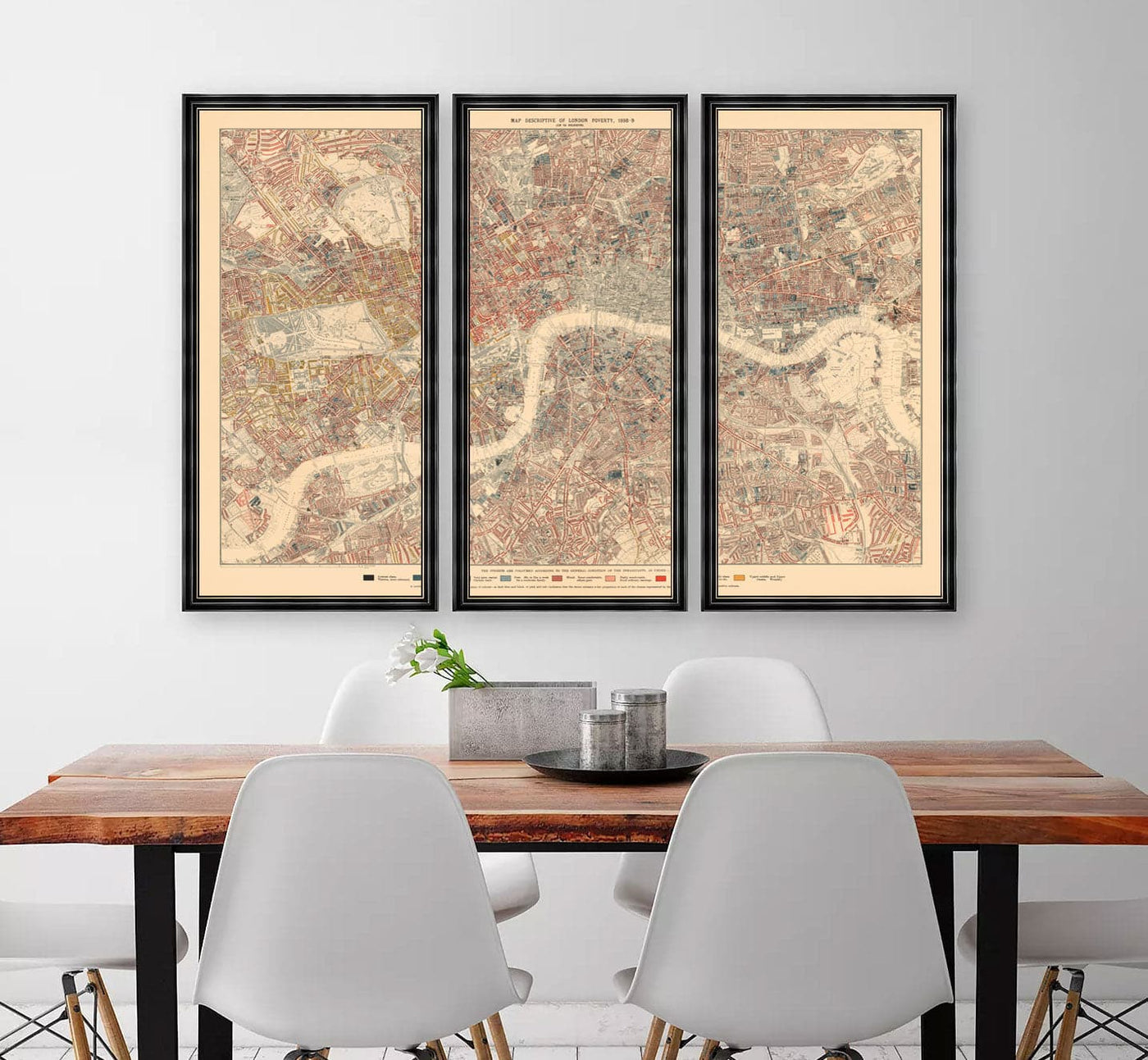 Old London Map Antique Triptych Framed Wall Art Greenwood 1830